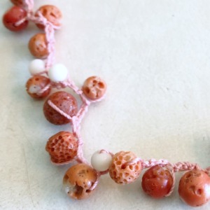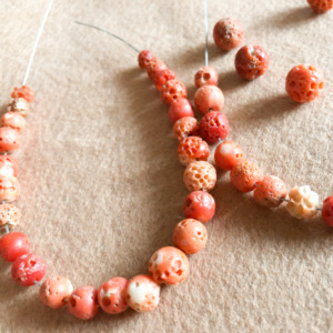 穴の空いた珊瑚と白い珊瑚をミックスしてネックレスをリメイクしたいというご依頼がありました。