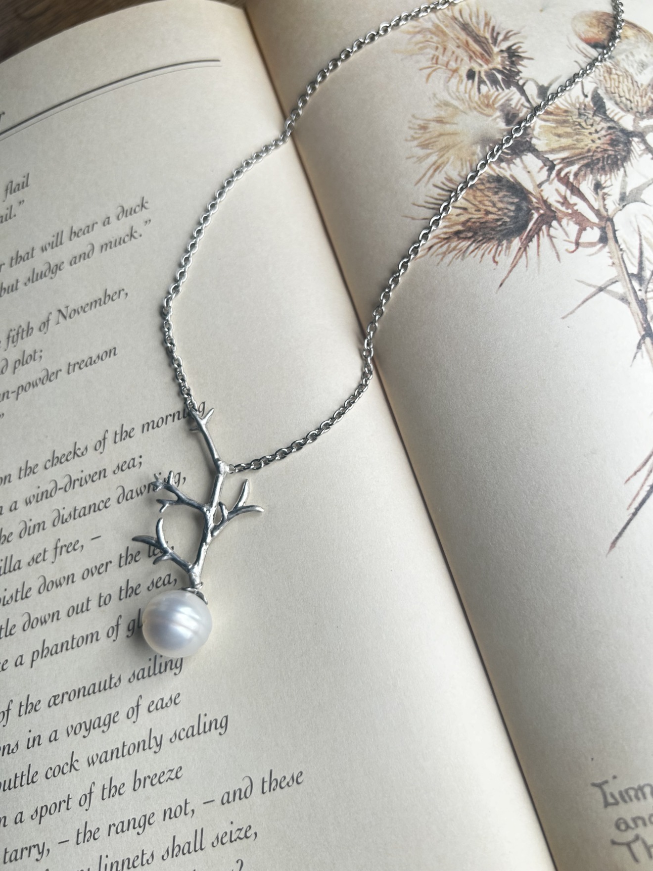 シルバーの有機的なラインに、一粒の真珠が確かな光を添えます。