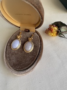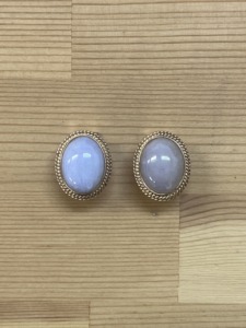 今回ご相談いただいたのは、K14の枠に淡いラベンダー色のカルセドニーが施された、クラシックなクリップ式のピアス。