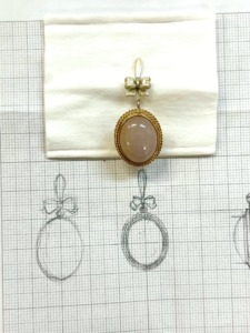石の美しさと枠のデザインをそのまま活かしながら、フックタイプのピアスへとリメイクすることになりました。