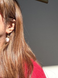 ロープ模様の枠が上品で、石の色も本当に美しい。でも、クリップ式は耳への負担が気になる、という理由でなかなか着けられずにいたそうです。